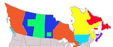 British Columbia (except Vancouver Island), 90% of Ontario 3